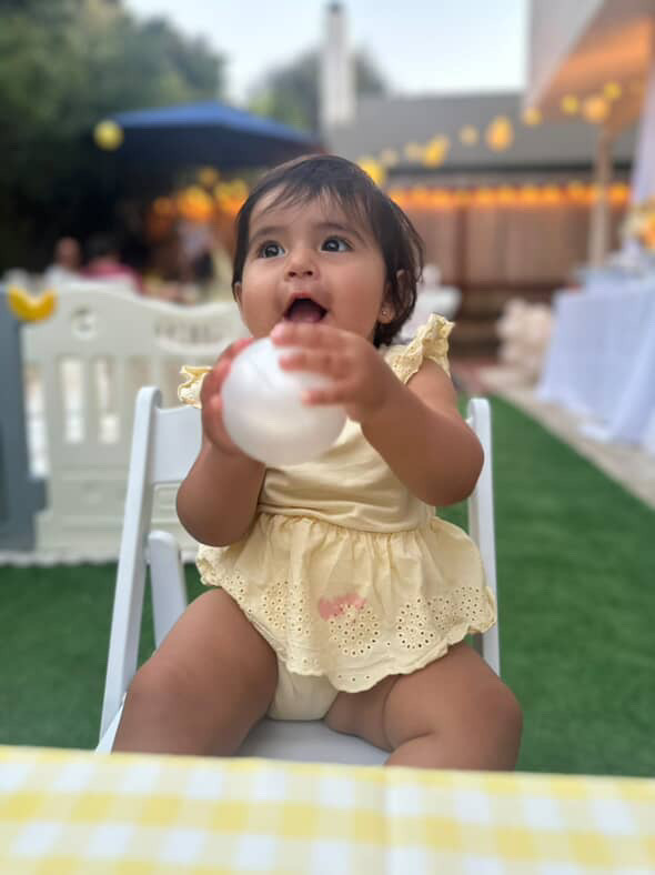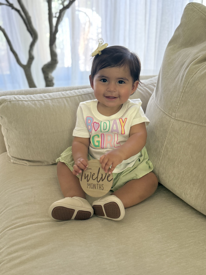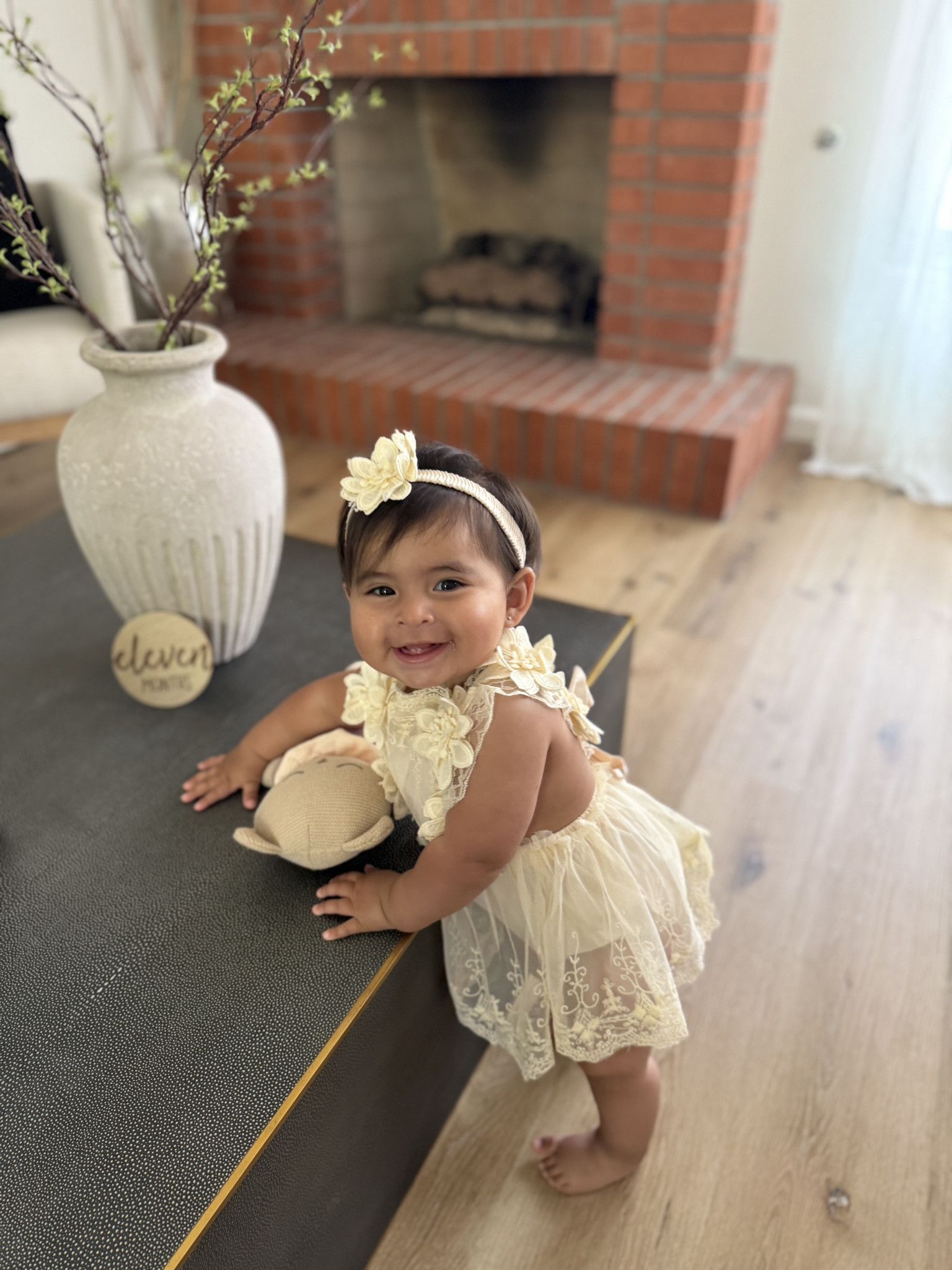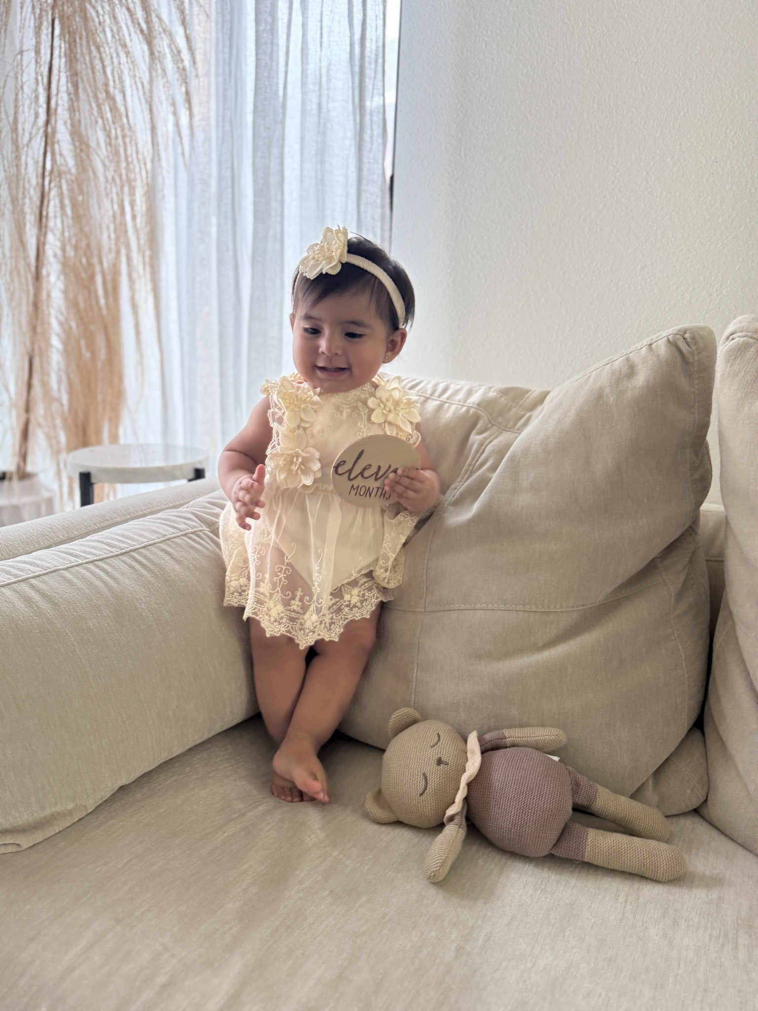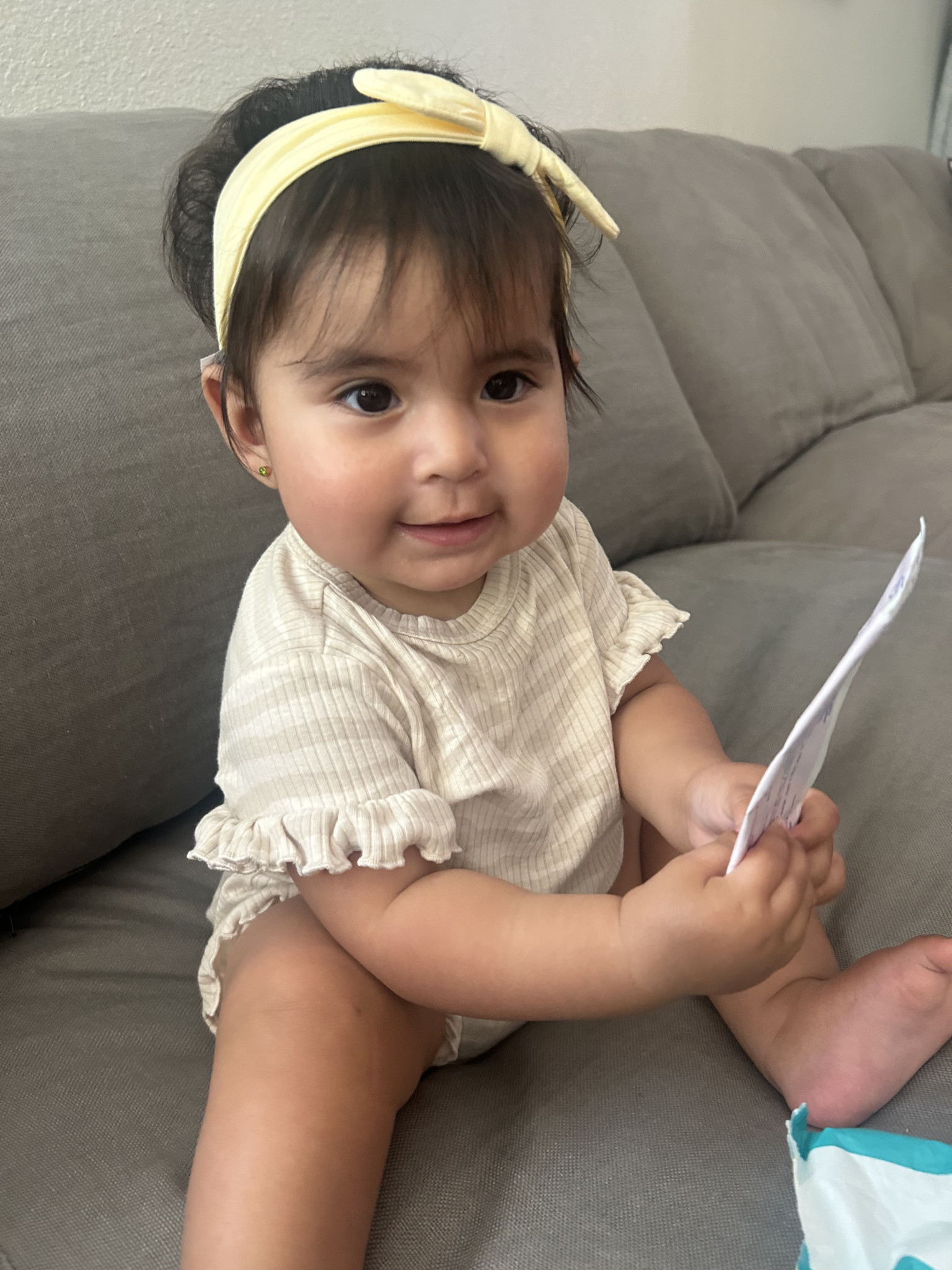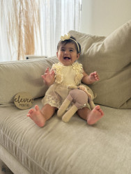 Talia, is a joyful burst of energy wrapped in sweetness. Even at just one year old, she radiates warmth and curiosity. She’s always on the move crawling, toddling, or dancing to music with the biggest grin. Talia has a contagious giggle and a smile that lights up every room she enters. She’s incredibly observant, always watching and learning, and already shows signs of being both playful and strong willed. Whether she’s clapping along to a song or babbling she’s a happy girl.