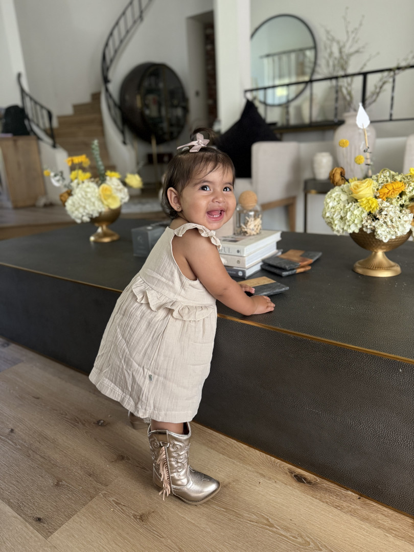 What are Talia Nassif's favorite activities?Talia’s favorite activities are as fun and full of personality as she is. She loves jamming out on her toy DJ set spinning tunes, pressing buttons, and dancing like she’s headlining her own baby concert. One of her absolute favorite things is going on coffee dates with her mom and big sister. She lights up during their outings, sipping her babyccino (aka water or milk!) and soaking in all the love and attention. Whether she’s grooving to music, exploring new places, or giggling with her sis.