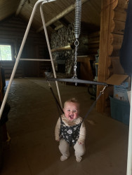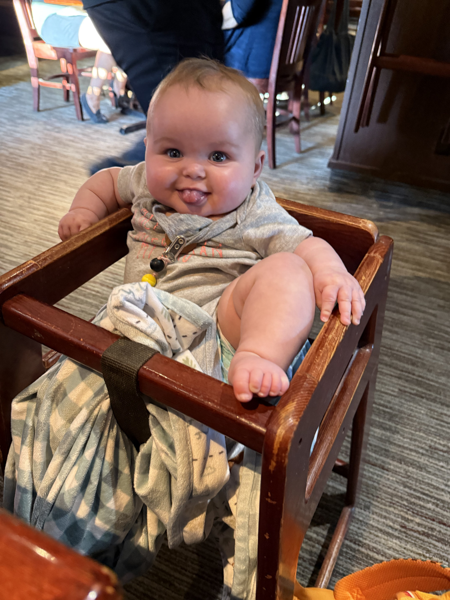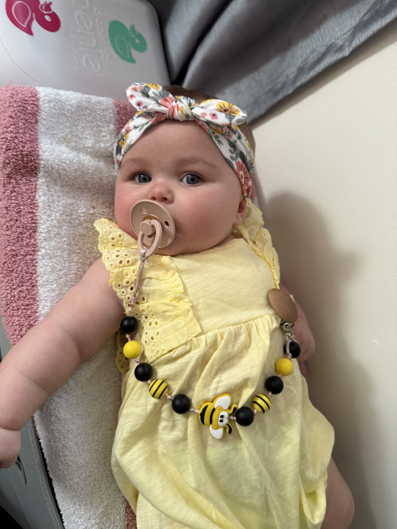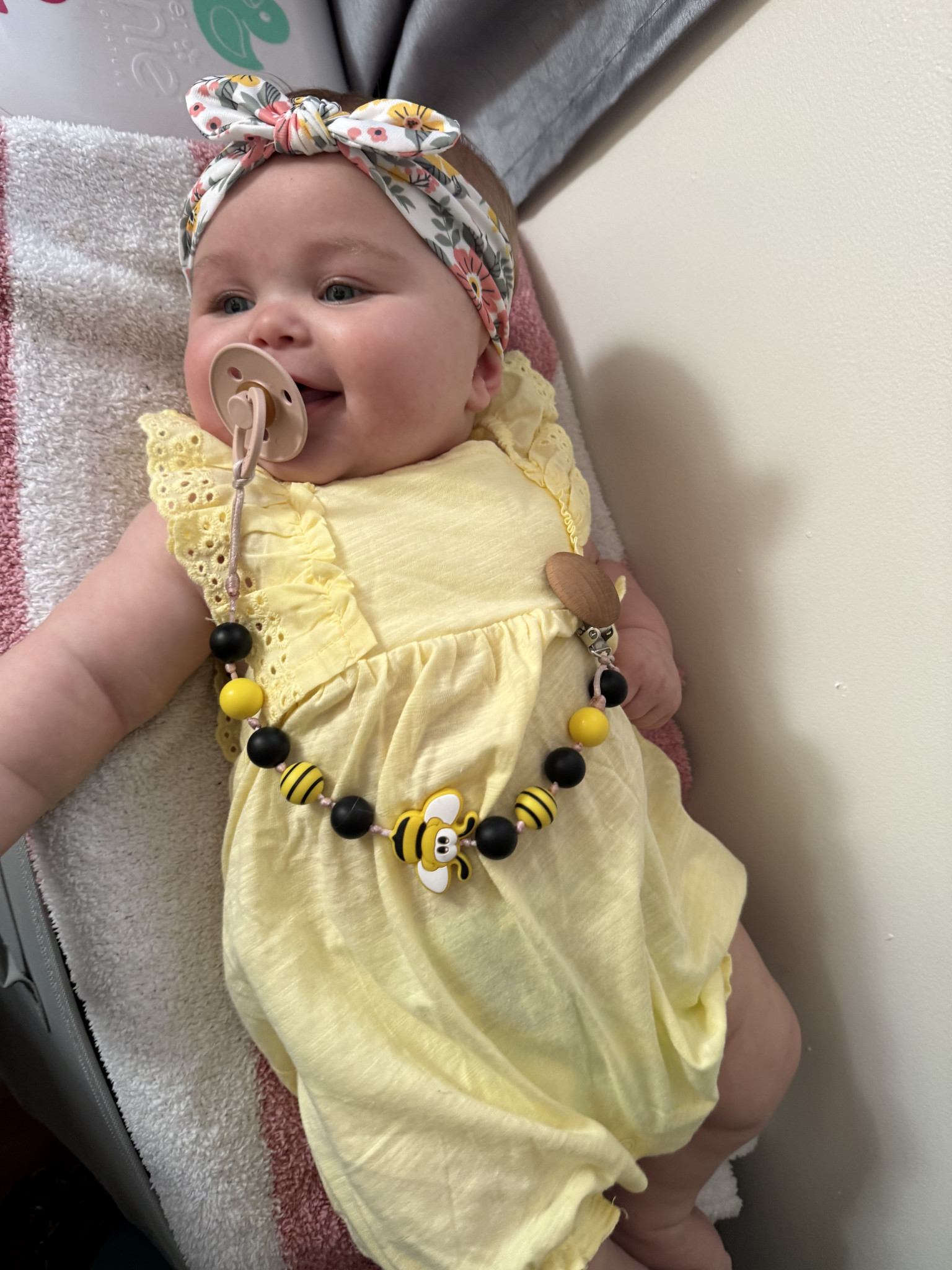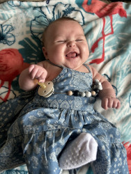 She’s a bubbly baby who always has a smile to share. Unless it’s dinner time then she double fists spoons and gives a war cry that would make the Spartans run.