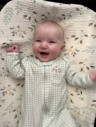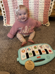 Talvi is such a social baby. She always wants to see what is going on around her. Other than having the brightest smile, she loves to talk and make her voice heard! Talvi loves to make music with her piano, travel and spend time with her family (especially her dog, Lumi!) She loves bath time with dad, cuddles and listening to her mom sing her lullabies as she’s falling to sleep.