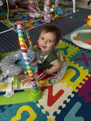 Theo has such a happy and bubbly personality. He loves cuddles and food and will always remind you when he needs more. His smile and giggles light up a room and he always knows when you need a hug. He is truly a cuddly little Theo bear.