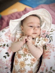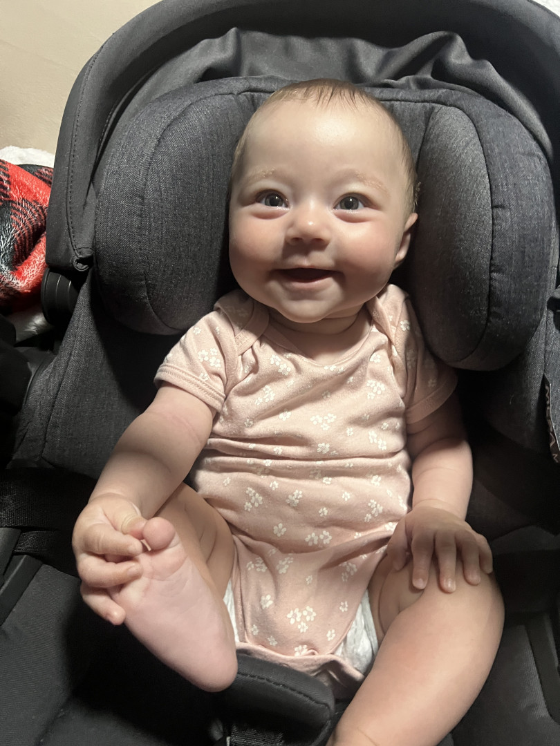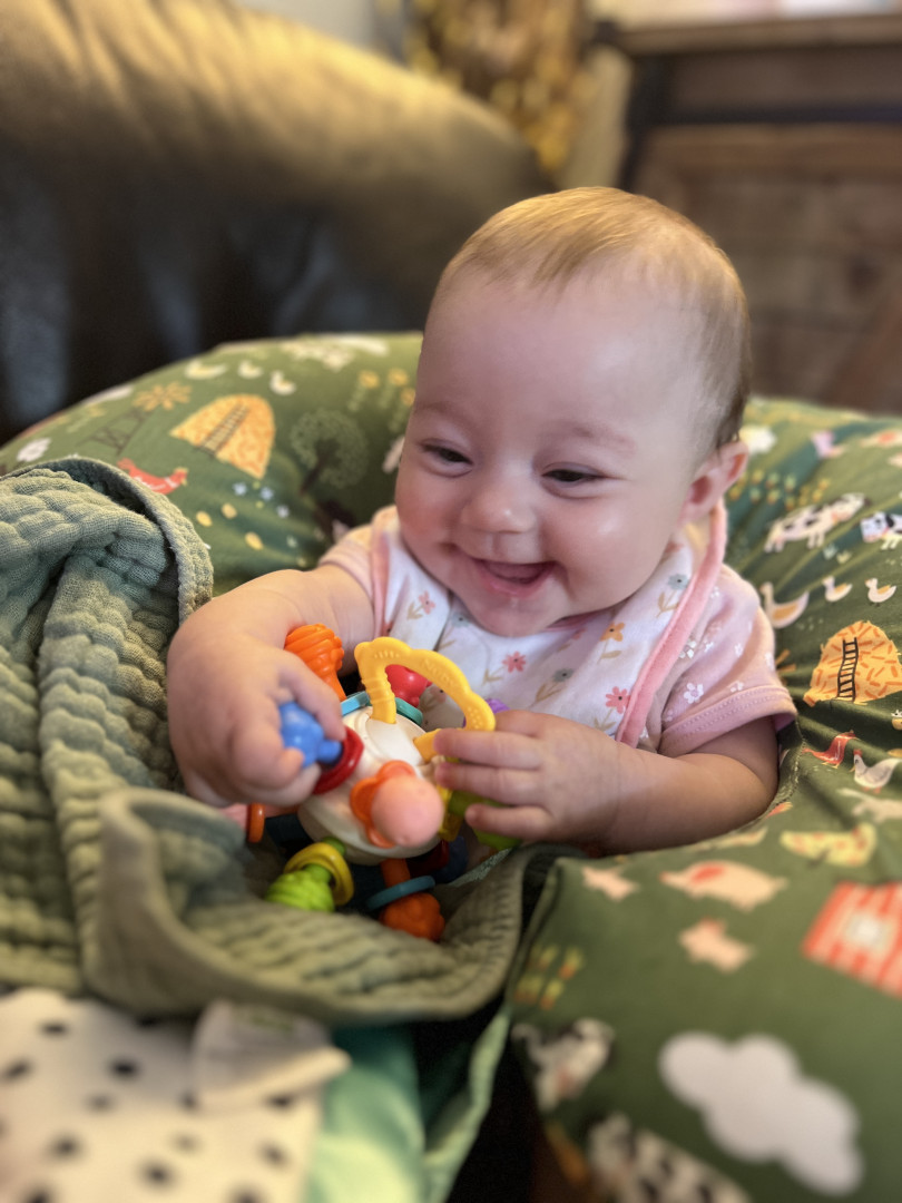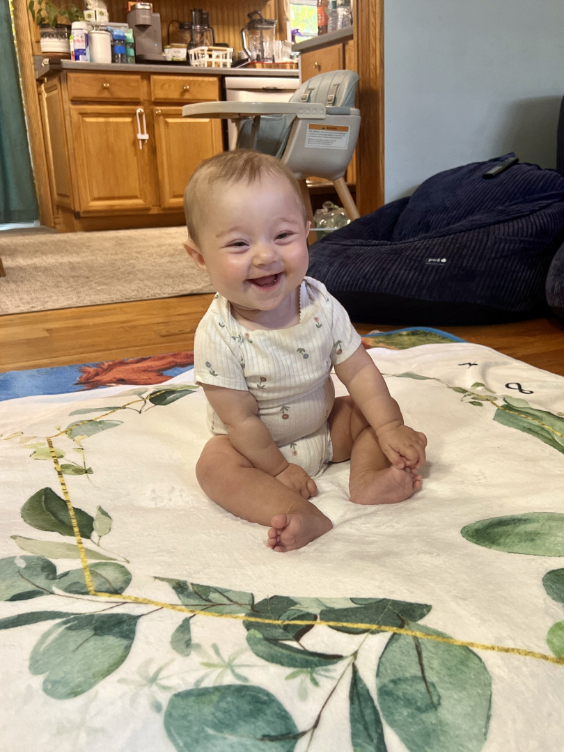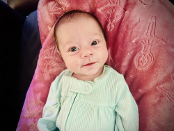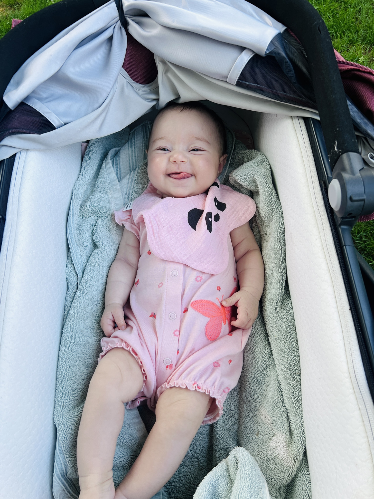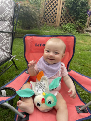 Vera is bubbly, full of smiles and giggles as she can light up a whole room. She has a special glow to her eyes that makes you forget about the tough or busy day you just had. She can be very talkative and can babble up a storm. She is very curious of her surroundings. She is also curious of herself as she realizes she can wiggle fingers, reach for things and puts her toes in her mouth. All in all, she is an angel!