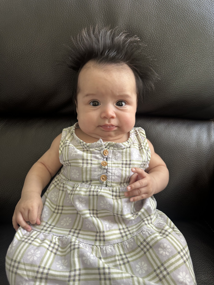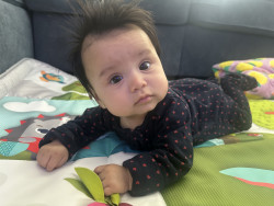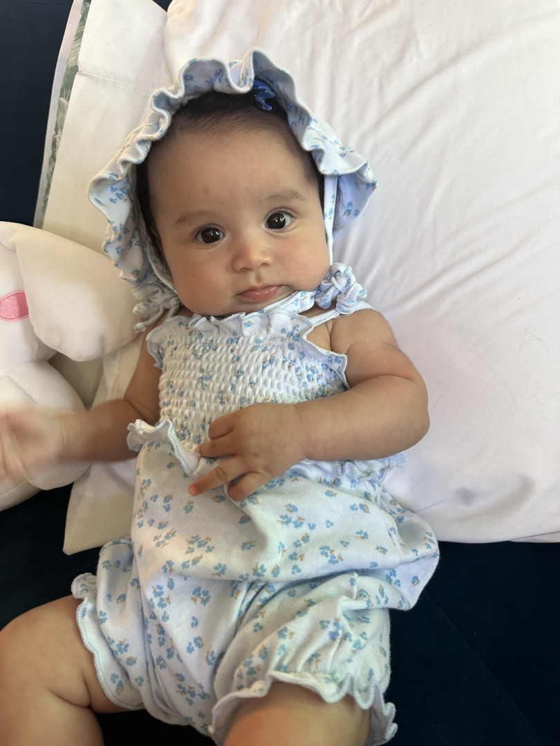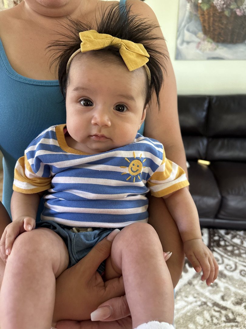 Victoria is such a sweet girl, she’s always smiling and laughing with anyone, straight from her morning wake-up to her bedtime. She is such a talker too with some growling in there! She loves to talk with her dad. She’s hilarious! She can be chismosa, always wanting to know what’s going with everything and everyone. This goes from looking out windows to stopping mid-feed to hear what anyone has to say!