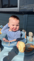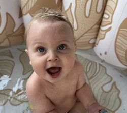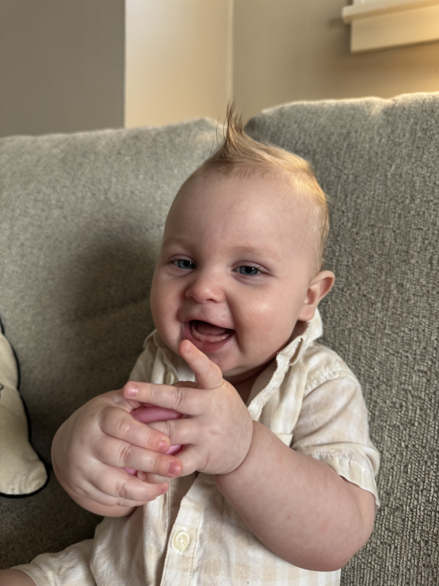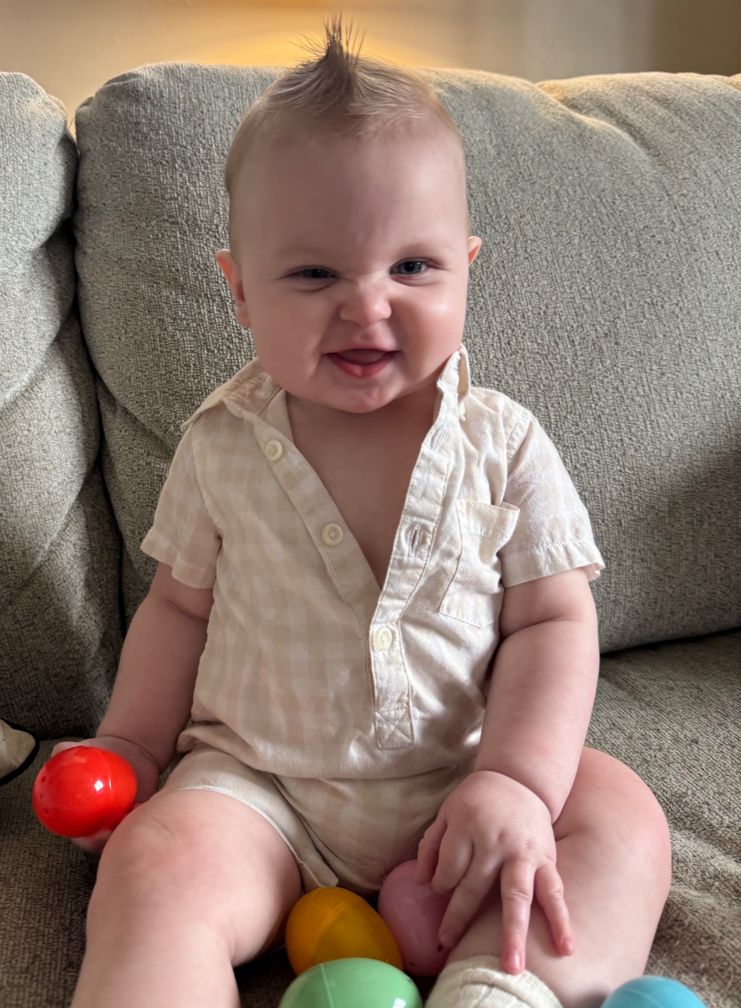 He deserves to be baby of the year because he is constantly told how he reminds people of the Gerber baby. He is the sweetest and cutest.