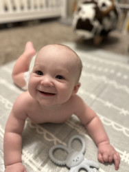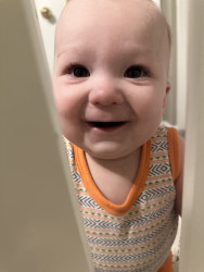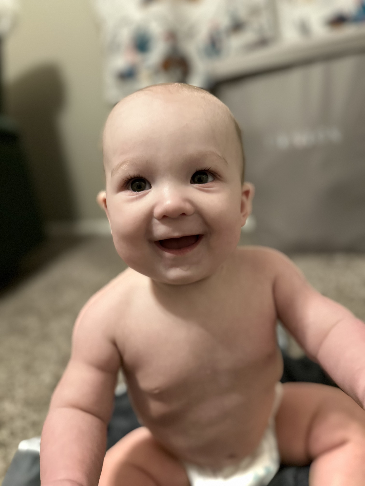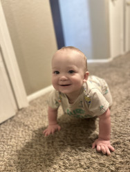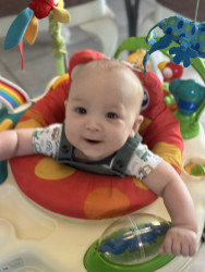 What are Weston Lenell's favorite activities?Weston loves to eat! He will eat anything and everything! We don't really know where he puts it all. He loves to yell and make noise. The boy has a pair of lungs on him! He loves to have conversations with the "baby in the mirror" (his reflection). Weston is obsessed with music, songs, etc. He especially loves the Itsy Bitsy Spider. More than anything, Weston loves to move! He broke 2 baby bouncers because he's insane when bouncing. Now, he's taking 4 - 5 steps and climbing stairs!