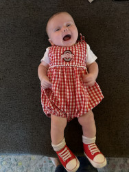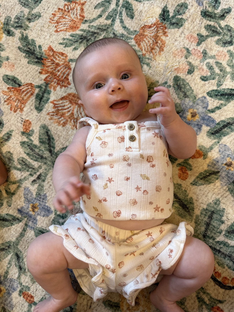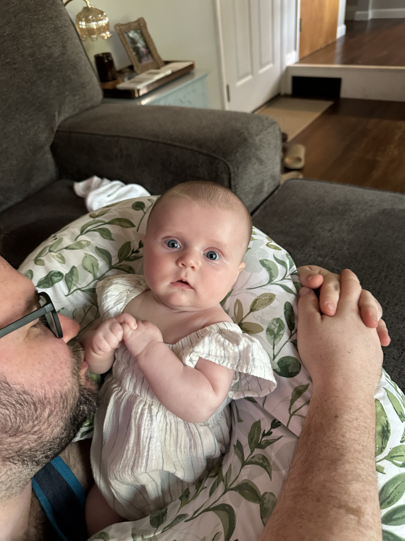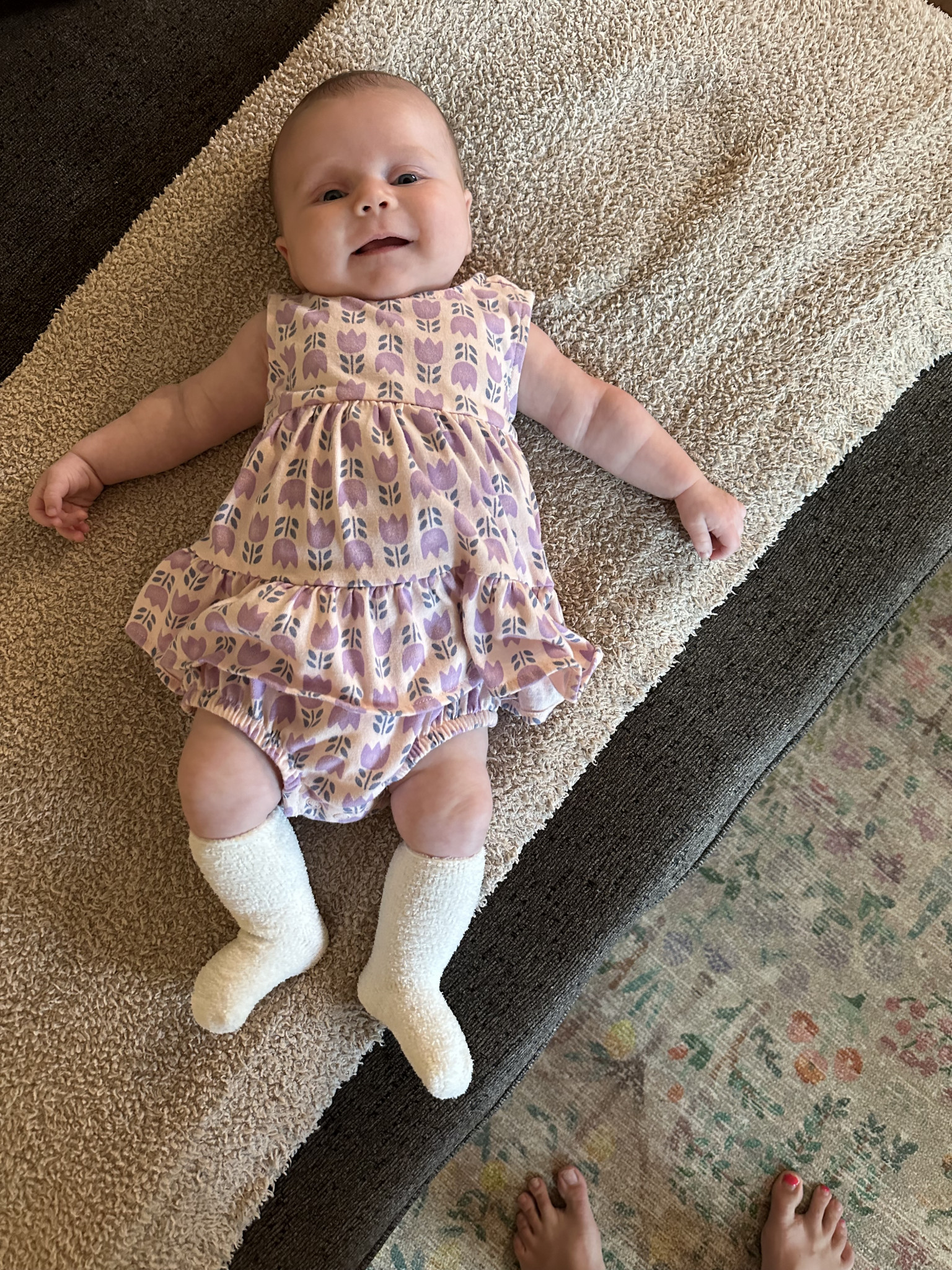 Winnie entered the world with eyes wide open! She has always been curious about the world and quietly observing what’s going on around her. She loves smiling at friendly faces and “talking” with mom and dad.