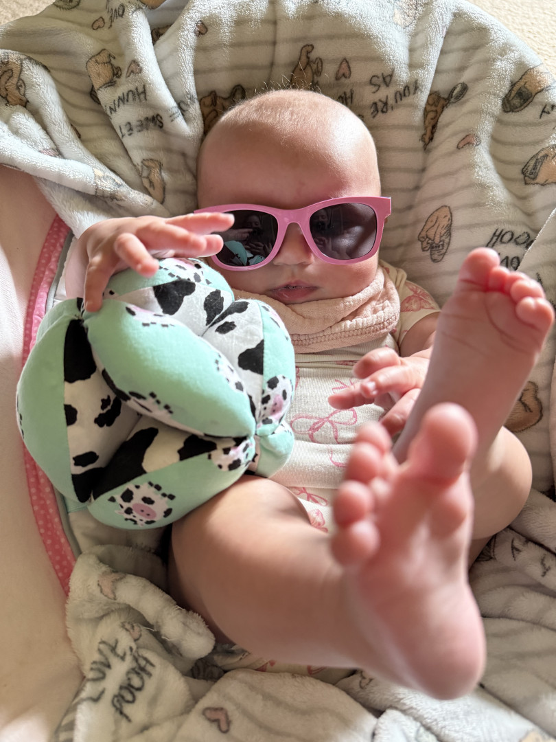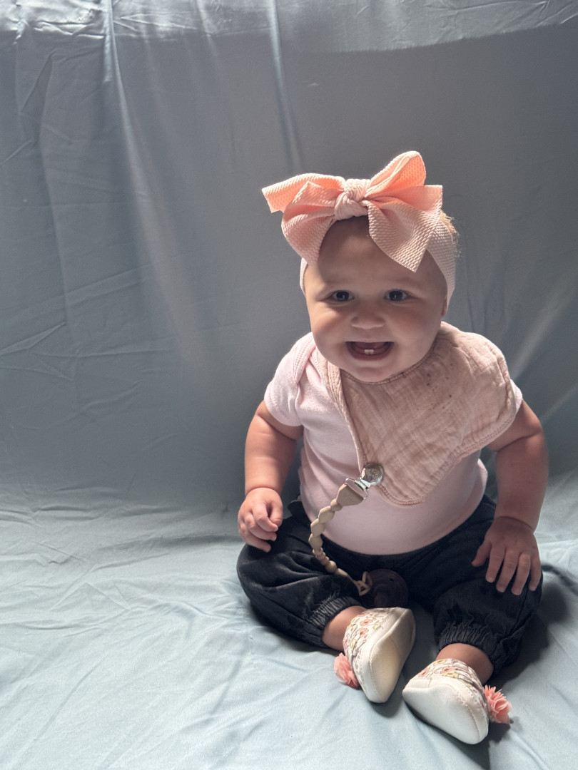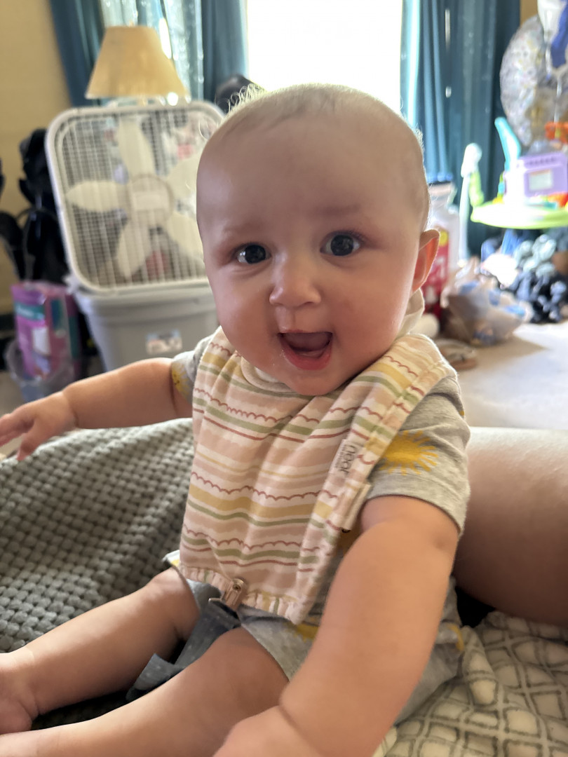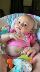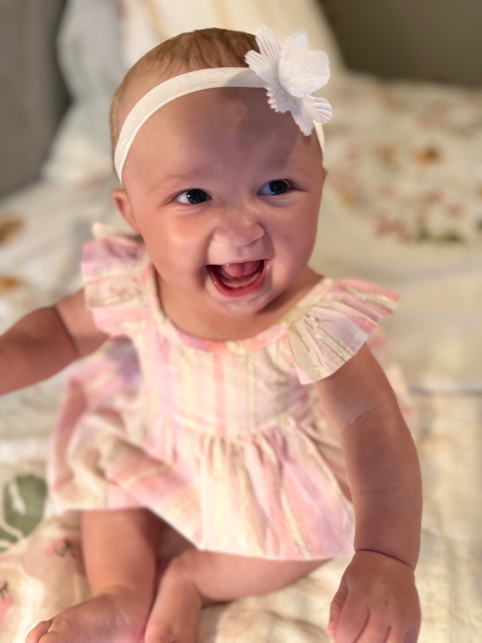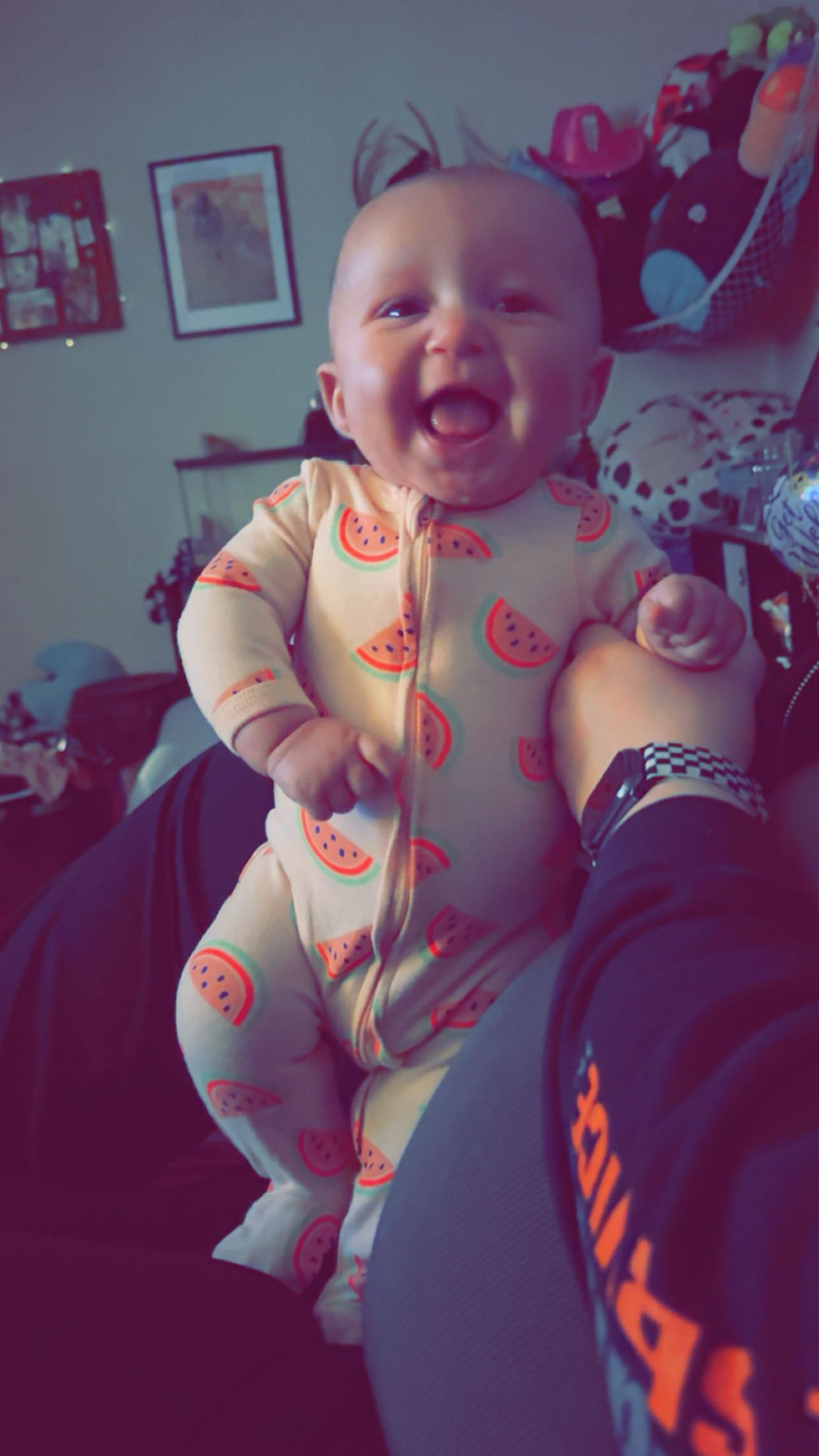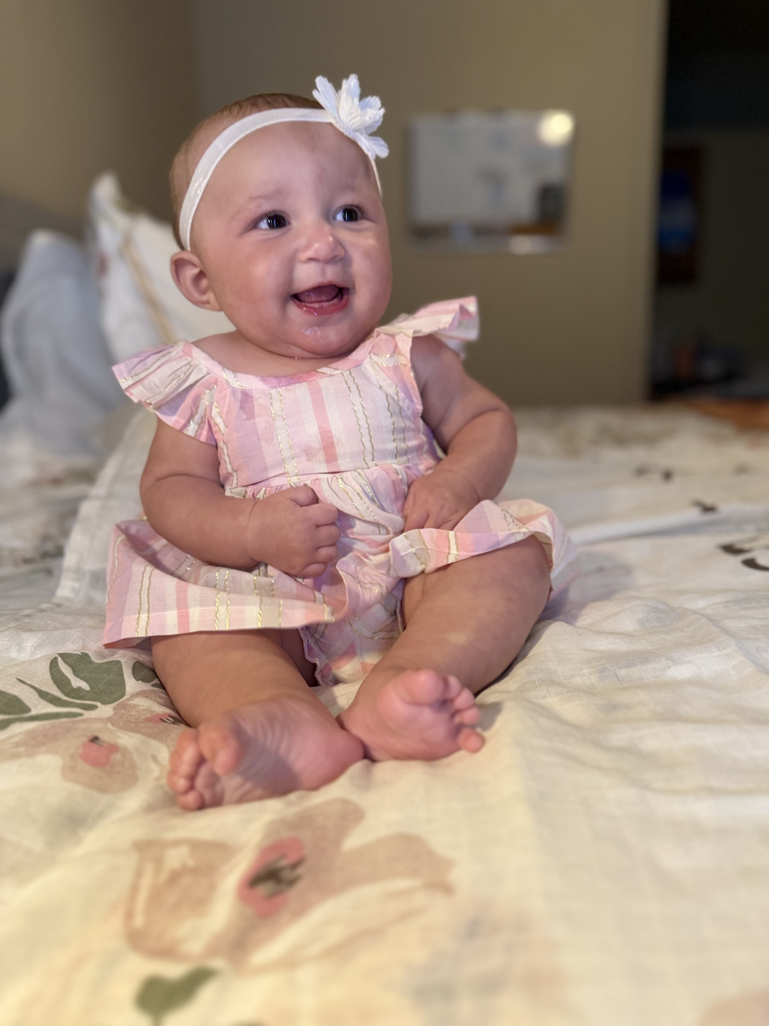 She’s very goofy, she tries to make you laugh when you’re upset, she has a bubbly personality, she’s very curious trying to see what she can get her hands on and very affectionate. She screams and babbles to anyone she sees. Wynnie is the most precious almost 9 month old. She’s just a very happy baby and loves when she gets others attention.