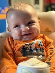 What are Xander's favorite activities?Xander loves wiggling and kicking his little legs like he’s ready to run a marathon. He enjoys exploring new sounds and giggles the most when someone plays peek-a-boo with him. He loves being read to. Cuddling in mom and dad’s arms is still one of his favorite places to be, and his curious eyes are always searching for something new to discover.