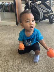 Zarion is such a happy baby boy. He is very inquisitive and thrives in social situations. He’s humorous and far from shy. He wakes up dancing and clapping his hands to the beat of his favorite shows. He will extend an arm and reach for your mouth to share his snacks. He will lead the way to the kitchen and open the fridge when he wants something to eat, even if it consists of pulling you out of bed. He loves to cuddle and snuggle up.