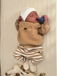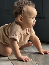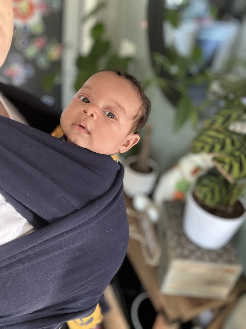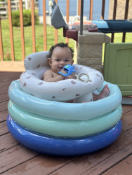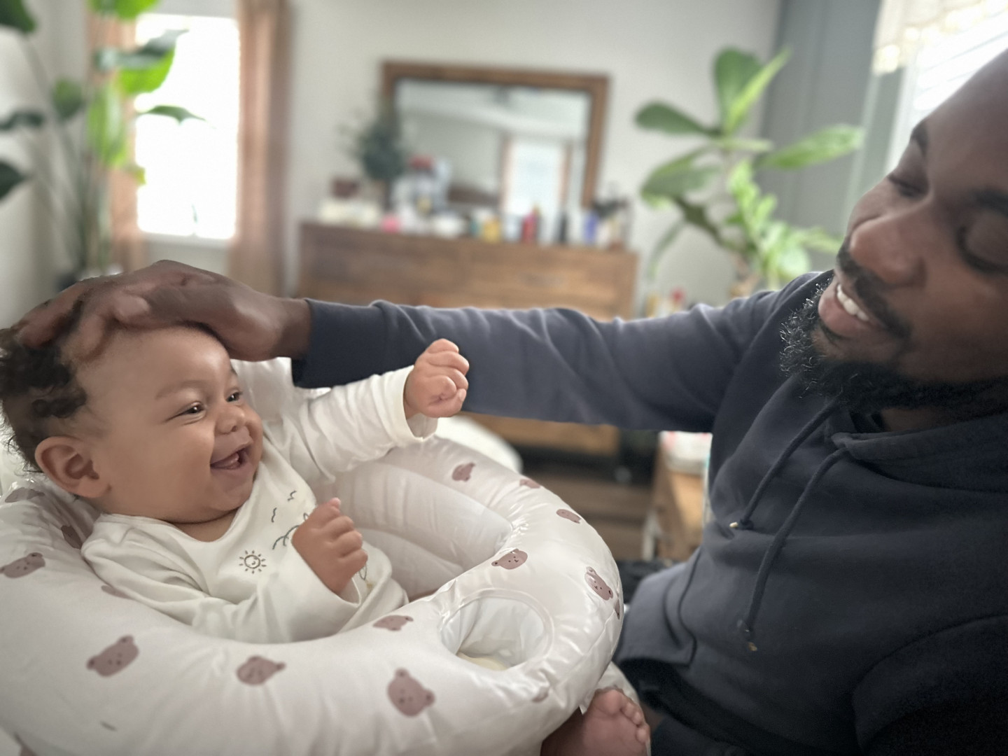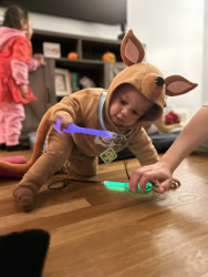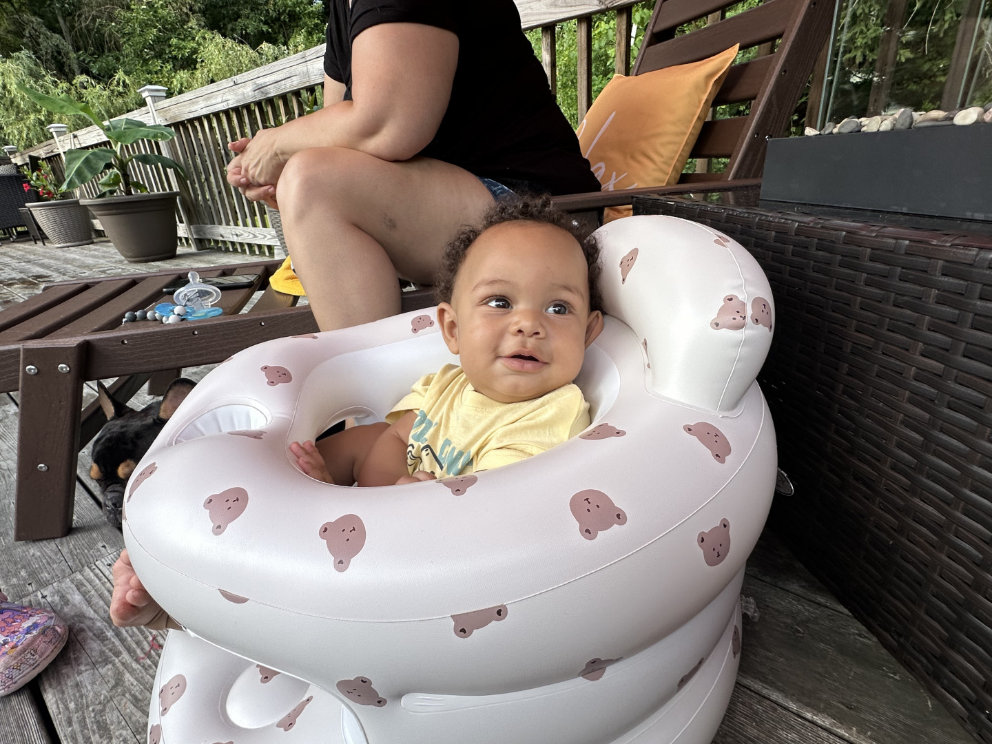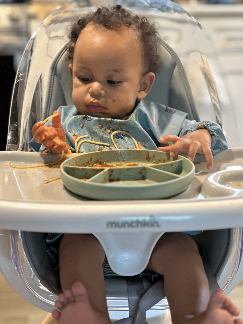 What are Zayne Robinson's favorite activities?Zayne loves to crawl BACKWARDS right now, as he’s still figuring out how to move forward. He also likes to jump around in his bouncer. His favorite activity for sure is nibbling on his teething toys and frozen fruit now that his first two teeth have finally popped out!