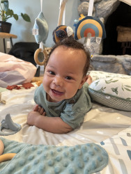 Zayne is a flirtatious and joyful baby boy. He brings a smile to everyone’s face with one look. He’s always so calm and peaceful… when he’s not laughing! He’s a great snuggle buddy. Although he’s always in the mix of his 3 and 5 year old sisters’ chaos, nothing takes away his sunshine.