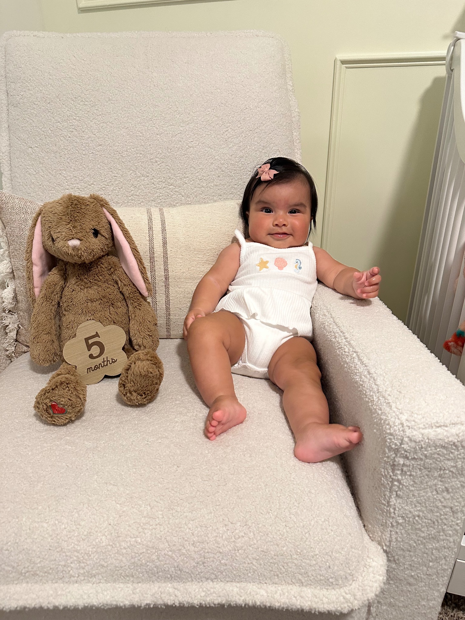 Zoë is an incredibly happy baby that loves to play and be tickled. Her smile is heart melting and infectious. She does however have a sassy side and is not afraid to give you a look of “now is not the time” if you interrupt her feeding times. They’re the most adorable set of grouchy eyebrows.