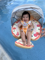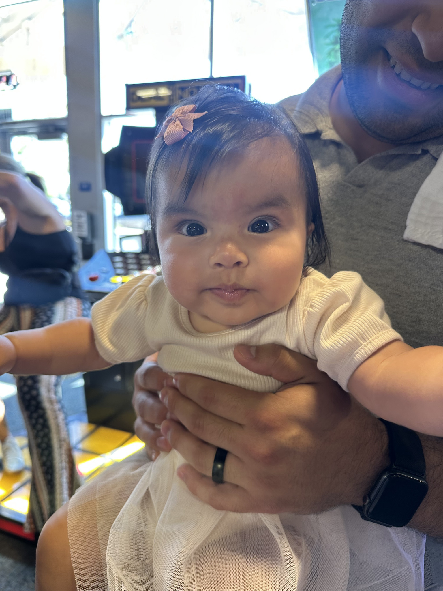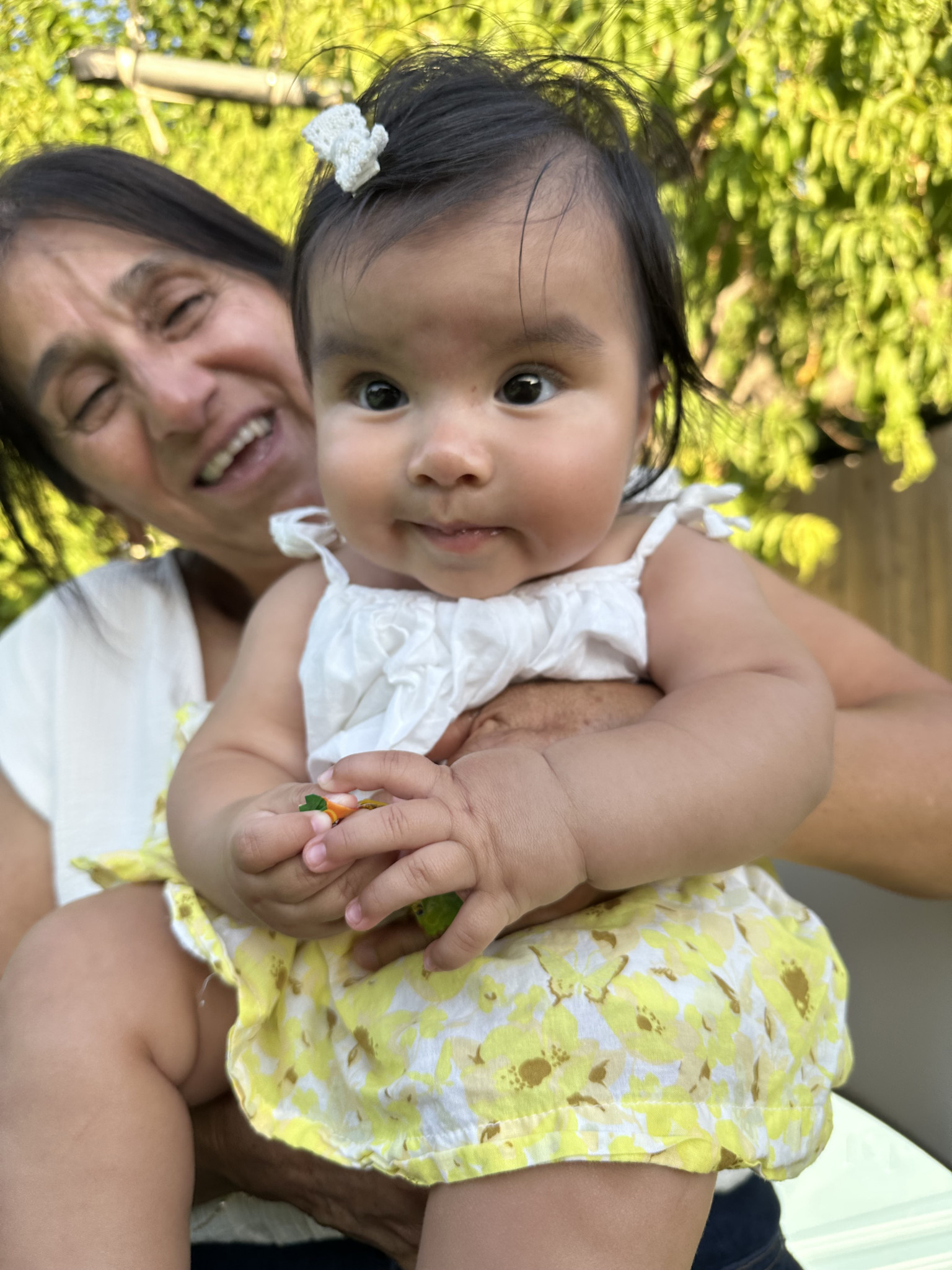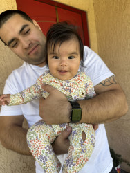 What are Zoë Gutierrez's favorite activities?Zoë's favorite activity is being carried through the yard where she intently watches she dog run and grandmas chickens eat. She enjoys kicking her feet through the spray of the water hose, giggling with pure joy. Meals bubbly event, as she loves blowing bubbles with her food. In her bouncer, she loves to kick her feet seeing just how high she can bounce.