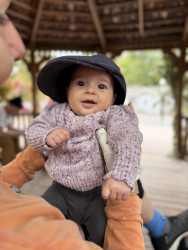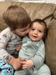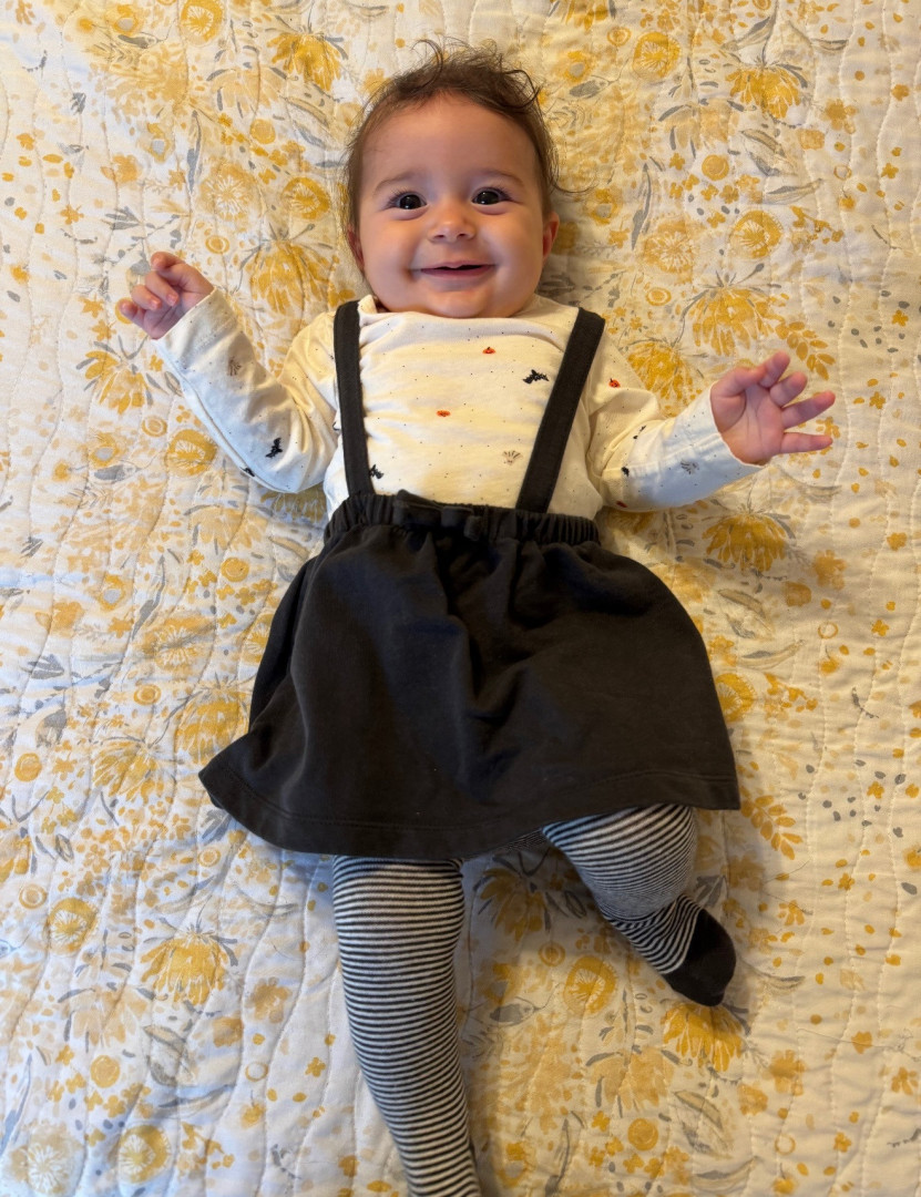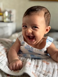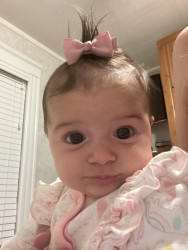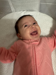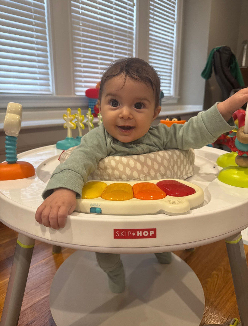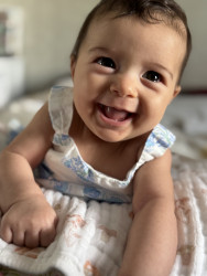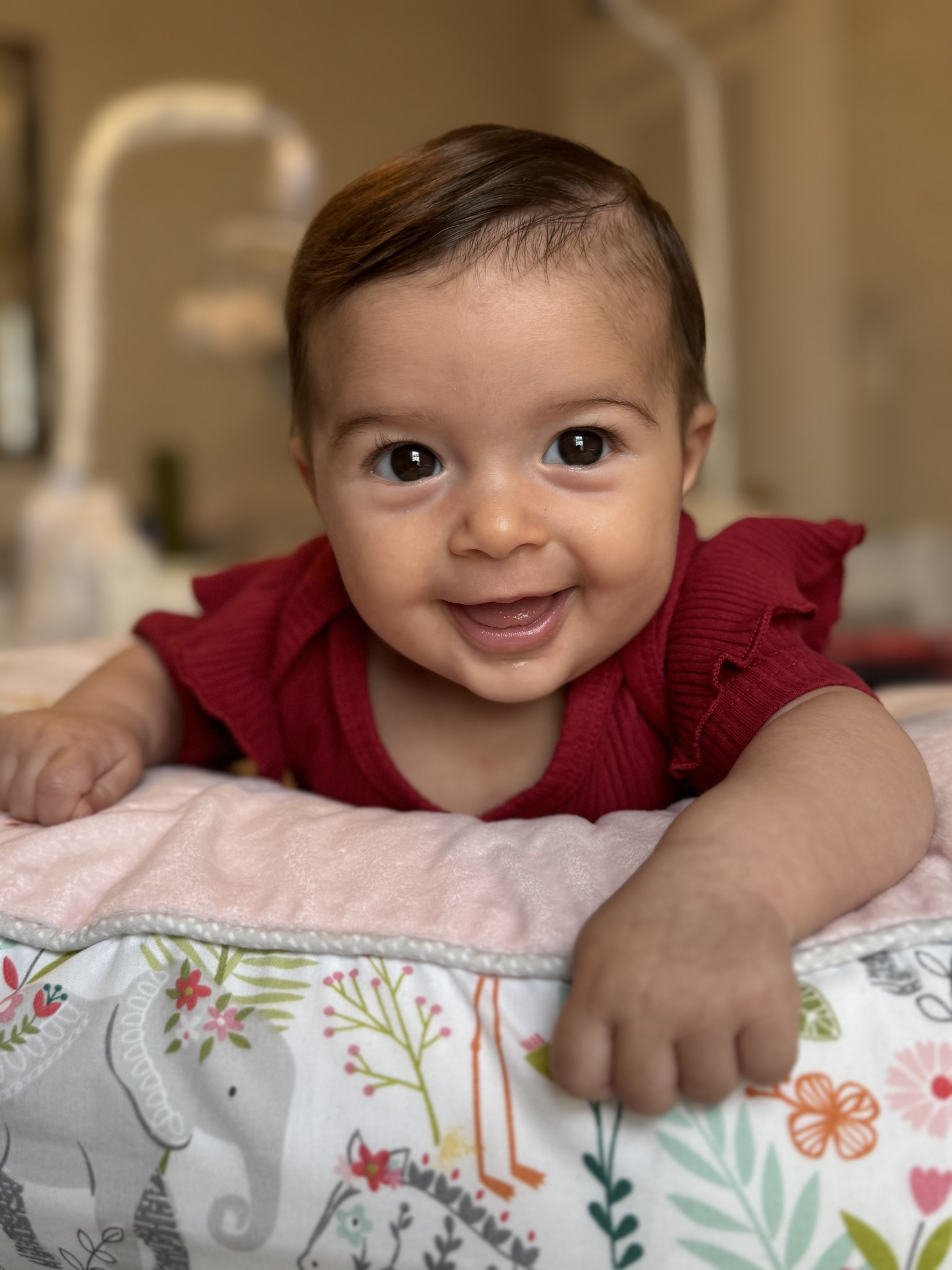 What are Zoe's favorite activities?Zoe’s favorite activities are people watching. Being cuddled, and gripping onto her teething ring… her “most” favorite thing is rolling from back to tummy on repeat. Sleeping is one of her least favorite things, as she does not want to miss anything! Of course mommy, daddy and her brother playing with her is right up there with rolling!